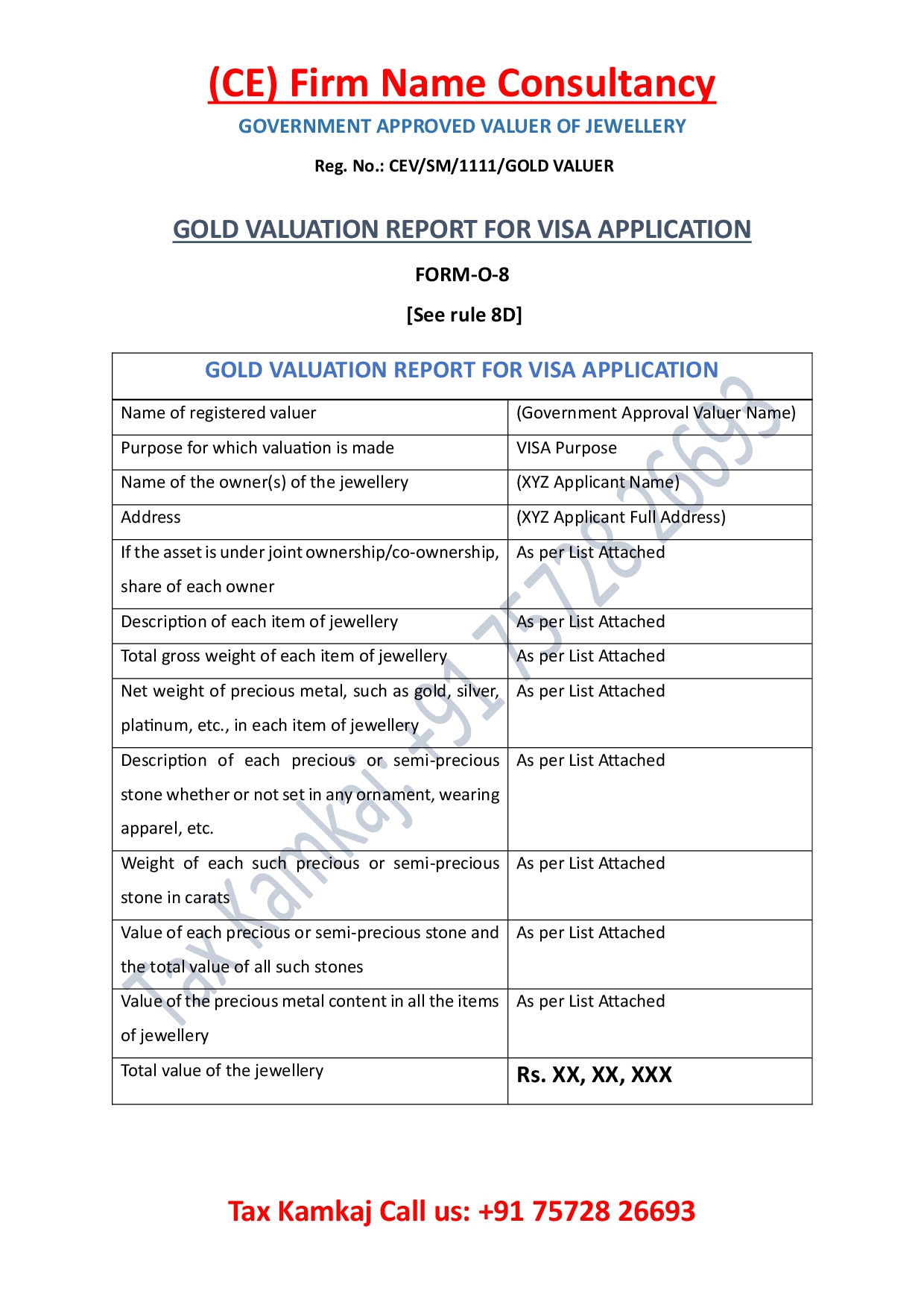 A Gold Valuation Certificate for VISA is an official document issued by a certified valuer that confirms the current market value of your gold assets, including details such as weight, purity, and total worth. A Gold Valuation Report for VISA is commonly used as financial proof when applying for tourist, student, or business visas to show strong financial background. By submitting a valid and recent Gold Valuation Certificate for VISA with proper stamp and signature, applicants can strengthen their financial profile. Overall, a Gold Valuation Report for VISA helps demonstrate financial stability and strong home-country ties, which can reduce the chances of visa rejection.