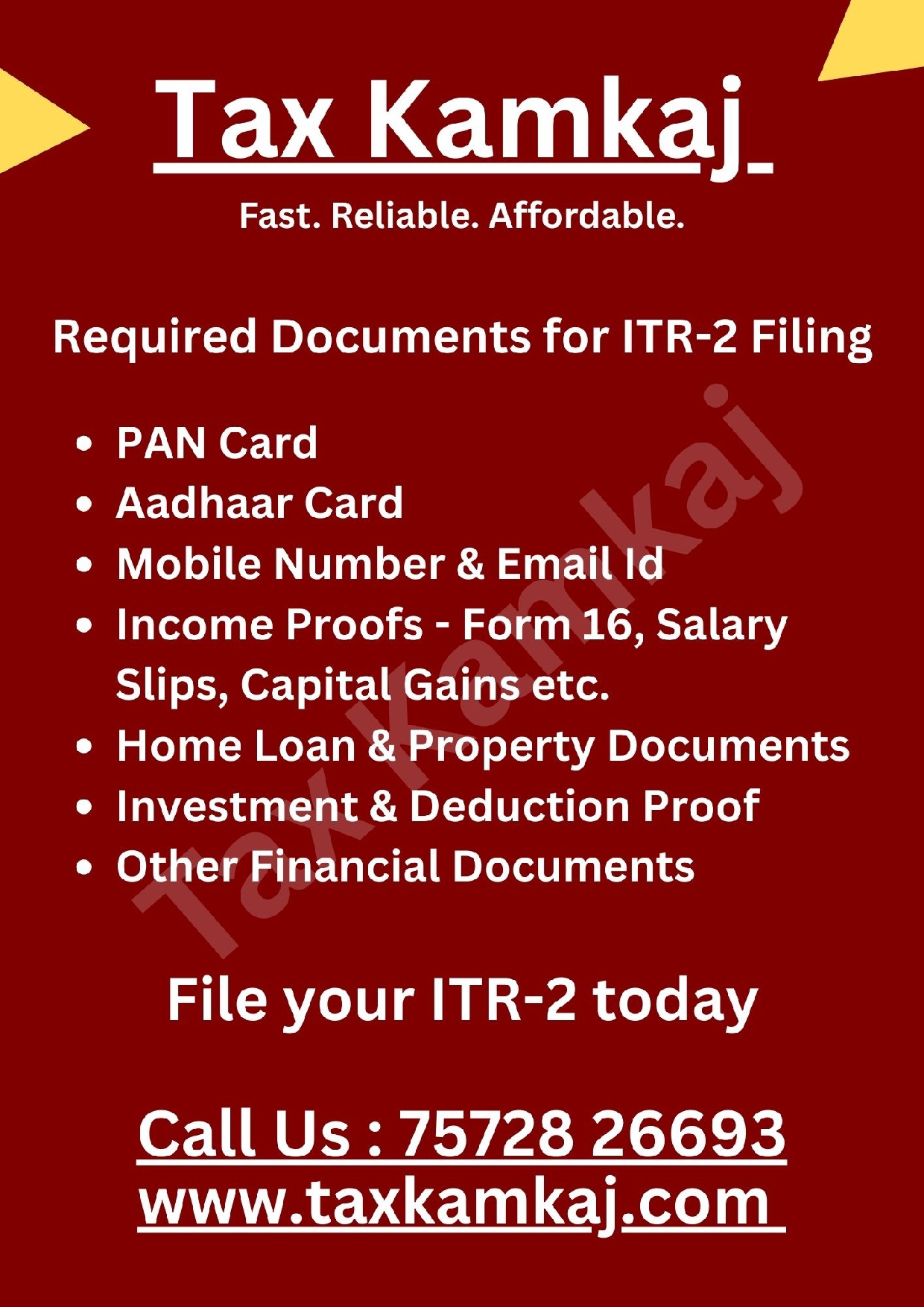 List of Documents Needed for ITR-2 Return Filing in Ahmedabad